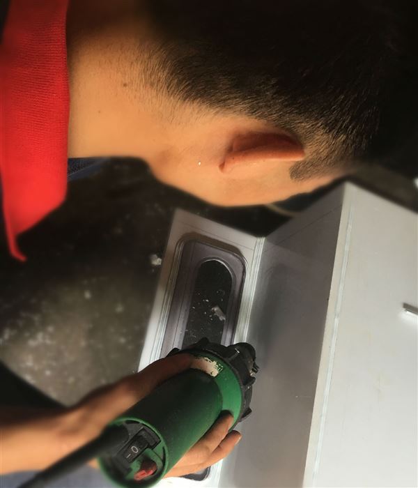 經(jīng)過(guò)幾天的分板、修邊、打磨全自動(dòng)破泡機(jī)框架終于拉起來(lái)了??吹竭@小編不得不為師傅們點(diǎn)贊,為他們感到自豪!